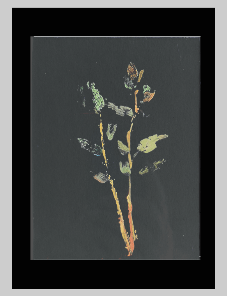 23. Réaliser une exposition : encadrer les réalisations finales (format 11 x 14 pouces) et fixer au mur. Couper la fiche descriptive de sa plante sous le nom et au-dessus du nom scientifique ; coller sur un carton noir. Coller le nom de la plante en innu-aimun sur le deuxième carton noir. Couper le surplus de carton. Fixer la description sous sa réalisation et le nom de la plante au-dessus de sa réalisation. Écrire le titre du projet, le nom de l’enseignant.e, le groupe et l’année de réalisation sur une carte ; fixer en haut des réalisations.