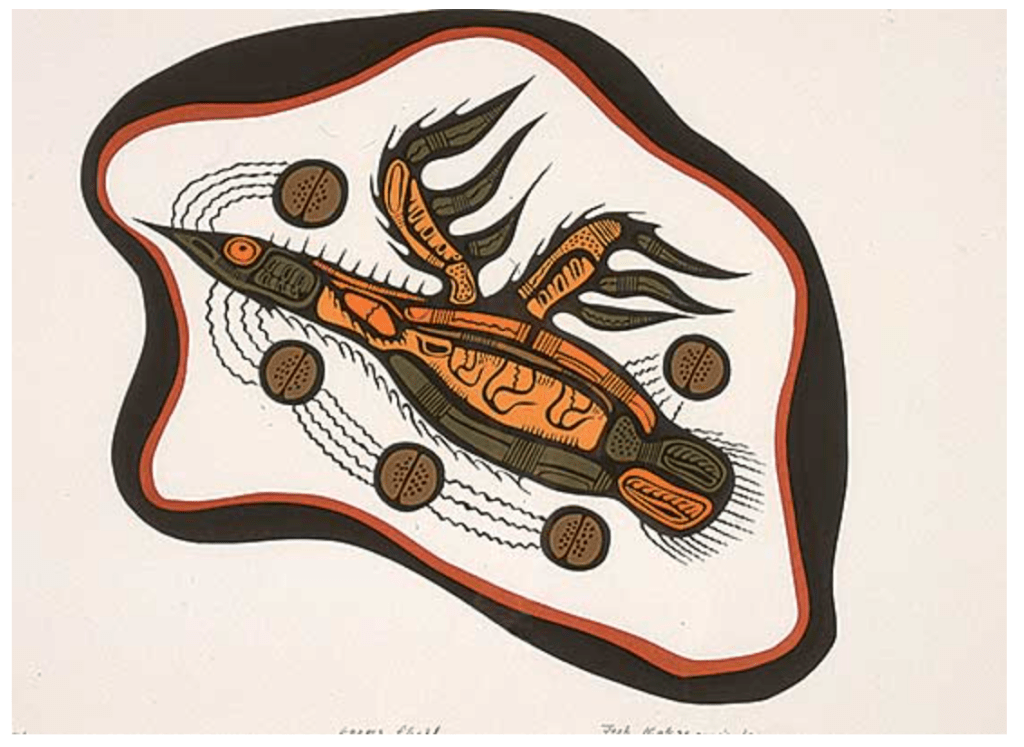 Josh Kakegamic (1952–1993), né dans la réserve de Sandy Lake, dans le nord de l’Ontario, au Canada, était un artiste talentueux profondément lié à l’art et à la culture autochtones. Fortement influencé par son beau-frère, Norval Morrisseau, et par l’artiste cri Carl Ray, il développa très tôt sa passion pour l’art. Dans sa jeunesse, il accompagna ses mentors lors d’ateliers scolaires dans la province, expériences qui façonnèrent sa vision artistique. En 1969, il participa à sa première exposition collective à North Bay, marquant le début de sa carrière publique dans le nord-ouest de l’Ontario.