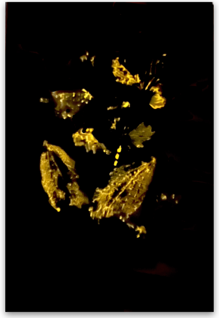 15. Placer un plastique transparent sur le carton noir (fond noir), et y superposer une surface lisse. Voir les étapes 10 et 11. Mélanger les pigments afin obtenir les valeurs désirées pour chaque élément. Ajouter du doré à chaque couleur de façon à obtenir de la luminosité dans sa réalisation.